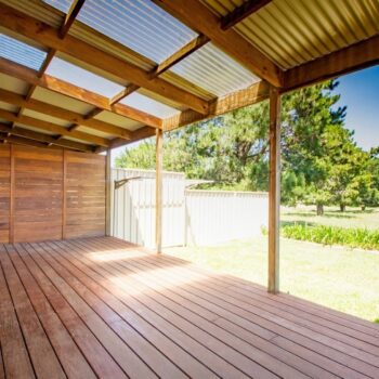Covered alfresco deck with sweeping rural views