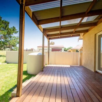 Low-maintenance backyard with rainwater tank