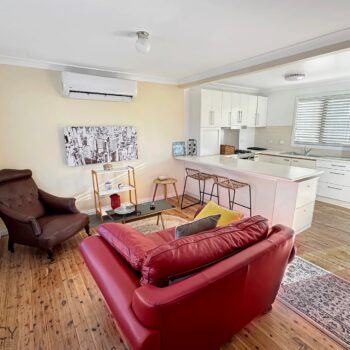 Upon entering, one is greeted by an inviting open plan lounge, dining, and kitchen area, replete with a cosy gas heater and a modern split system air conditioner ensuring year-round comfort. The updated kitchen, which is the heart of the home, is perfectly designed for whipping up culinary delights while engaging with family or guests in the connected living spaces.