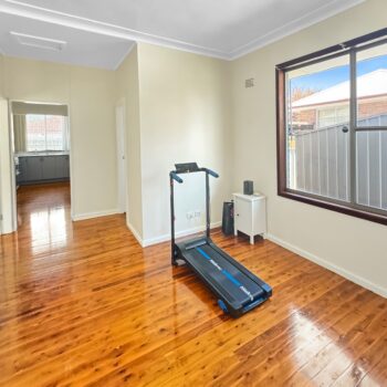 Three bedroom family home with two living areas, one bathroom and tandem garage.