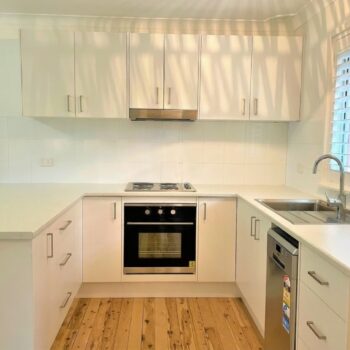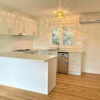 Stylish renovated kitchen with plenty of cupboard and bench space, dishwasher, electric cooktop and oven